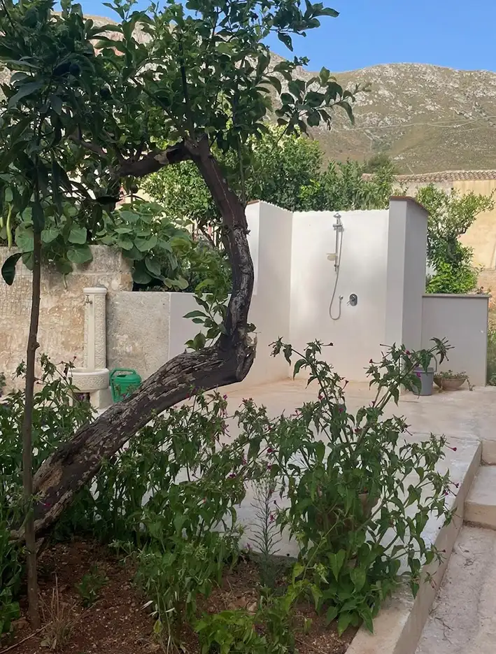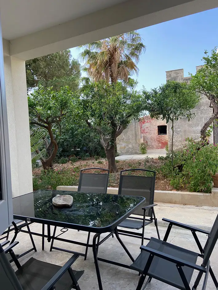 Il giardino è raccolto, intimo, con tanti alberi di agrumi, è attrezzato con: